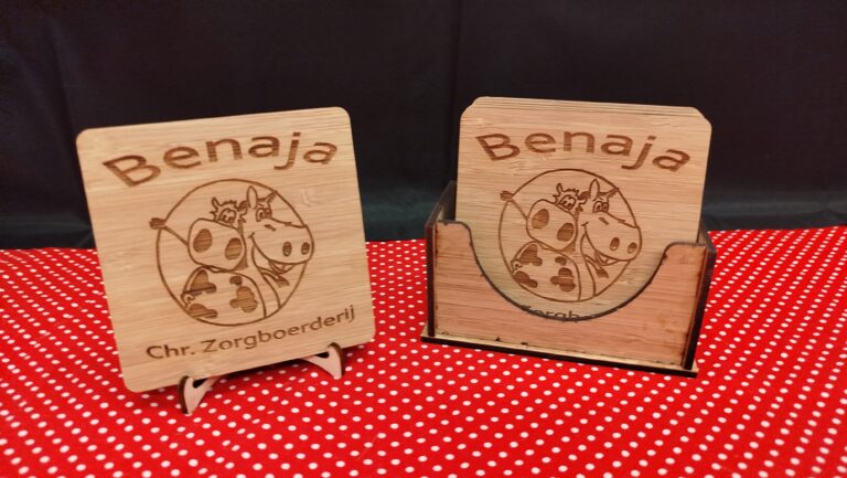 Benaja onderzetters incl. houder. € 11,50 Afm. onderzetters ca. 9×9 cm. (b x h)(6 stuks) Paardenhoofden onderzetters incl. houder. €