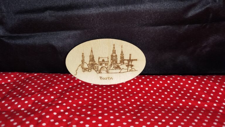 Koelkast magneetBuren Skyline op linde hout Prijs € 3,50 Ca. 85mm x 50mm (bxh) Koelkast magneetWillem en Anna 475 jaar