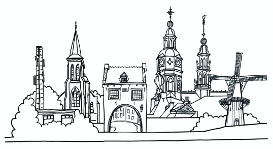 Deze skyline van Benaja chr. zorgboerderij te Buren is ontworpen en gemaakt door tekenares Bonnie Bouman-van der Poel (VanBonnie). De